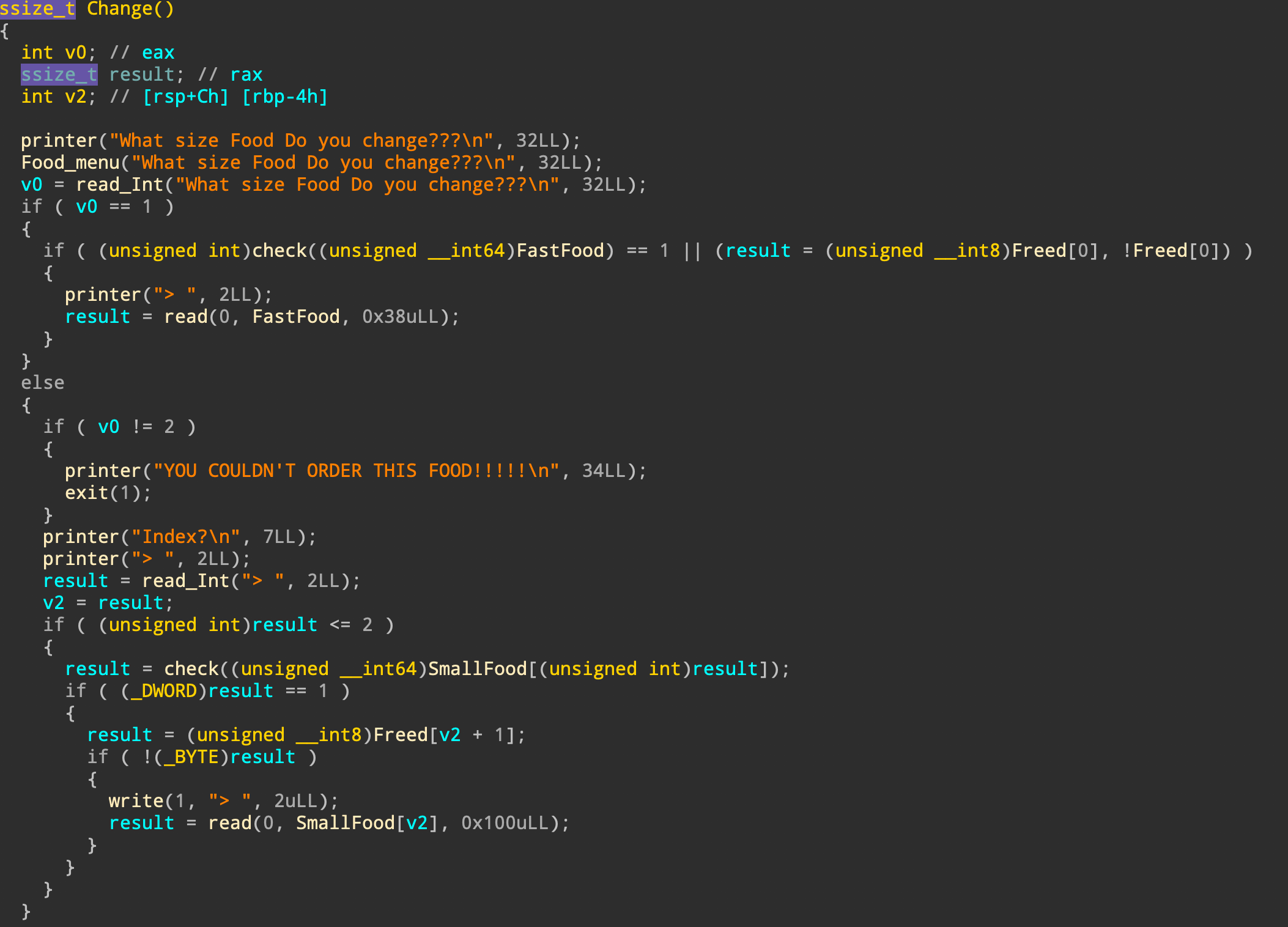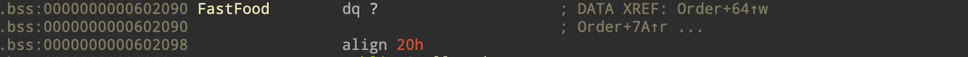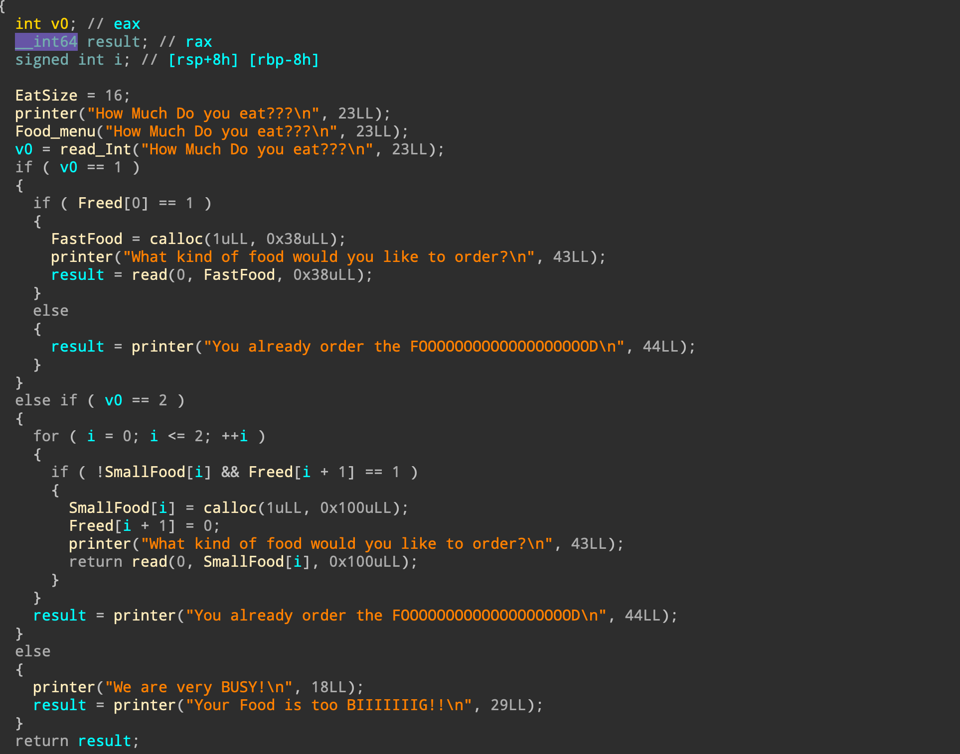 2. 0x38만큼 할당 & 입력 받음 -> 이 포인터는 FastFood 전역 변수에 저장