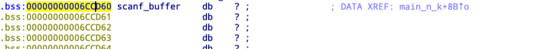 2. scanf("%s", &scanf_buffer); 를 실행하는데 저 scanf_buffer는 bss의 주소에 있다. 즉 우리는 bss에서 bof를 일으킬 수 있는 것이다.