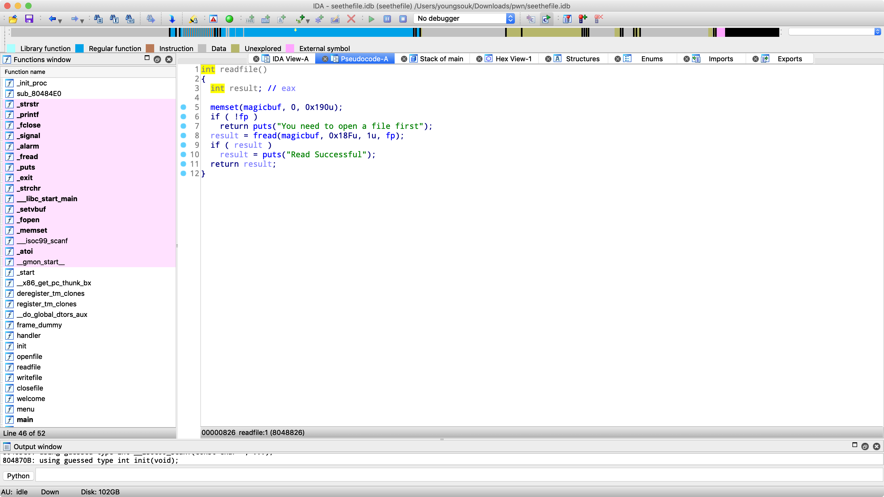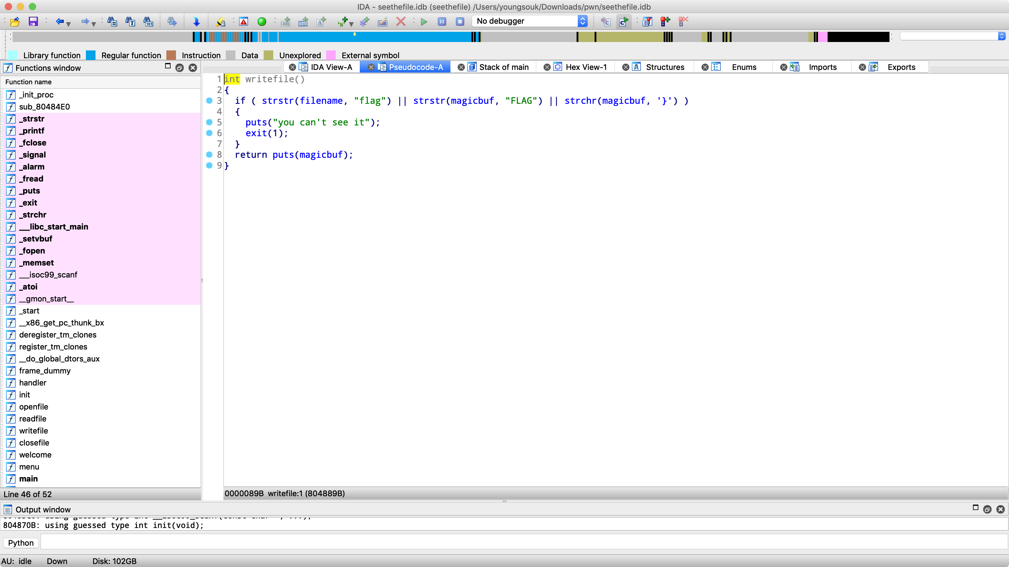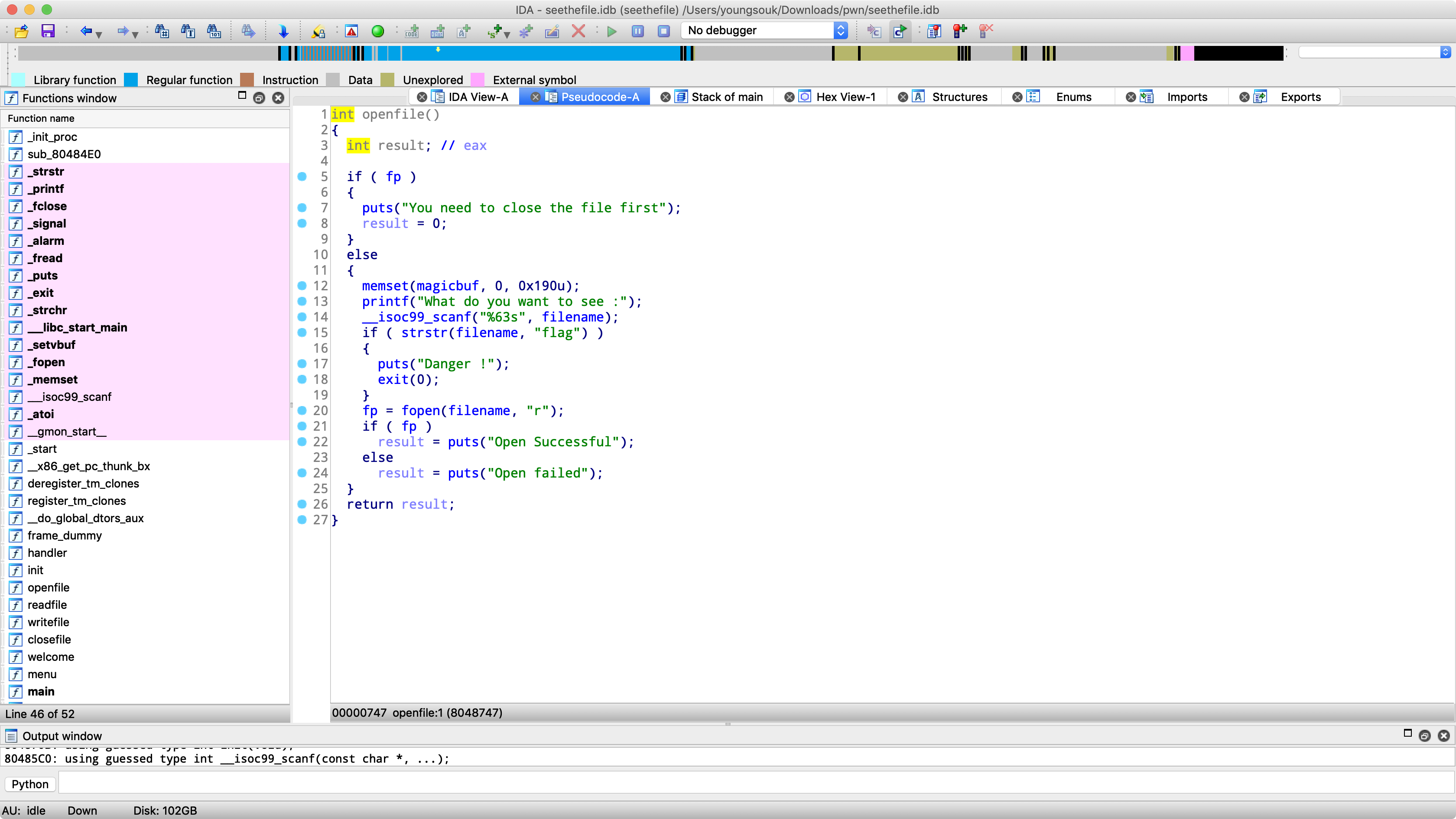 이렇게 파일 관련 함수들을 분석을 해보았는데 이번에는 이것을 바탕으로 FSOP라는 공격기법을 사용해볼 것입니다. 문제는 pwnable.tw의 seethefile이라는 문제입니다.
